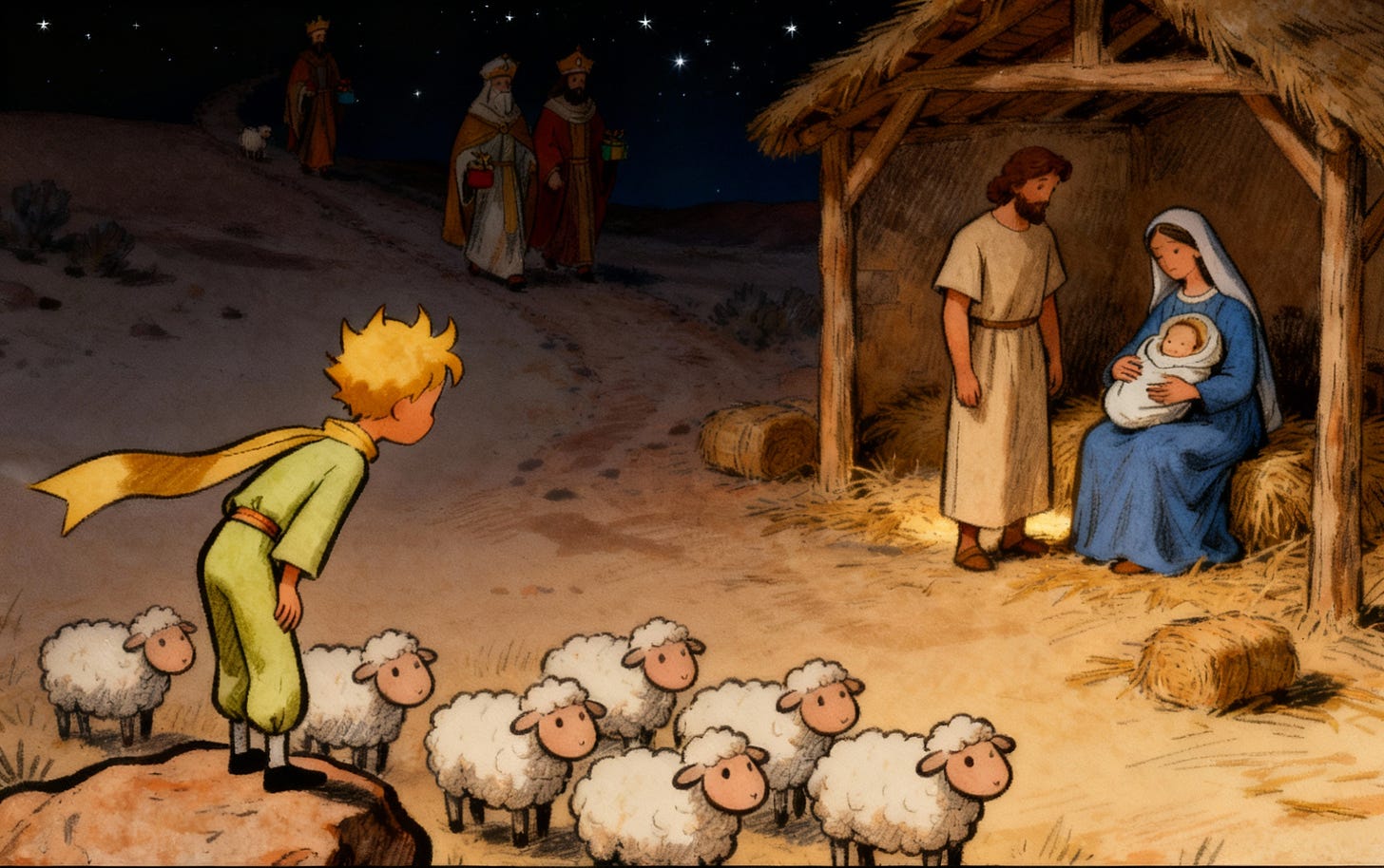 Imagina al Principito de Saint-Exupéry, con su bufanda al viento y su corazón curioso, acercándose al humilde pesebre de Belén. No vería un rey en un palacio, sino un niño envuelto en pañales, rodeado de animales y pastores.